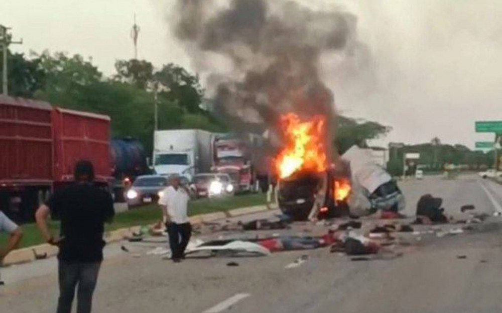 Após a batida, a caminhonete, que funcionava como transporte coletivo, pegou fogo e ficou atravessada na estrada. Este é o terceiro acidente rodoviário com vários mortos registrado no México em menos de uma semana.