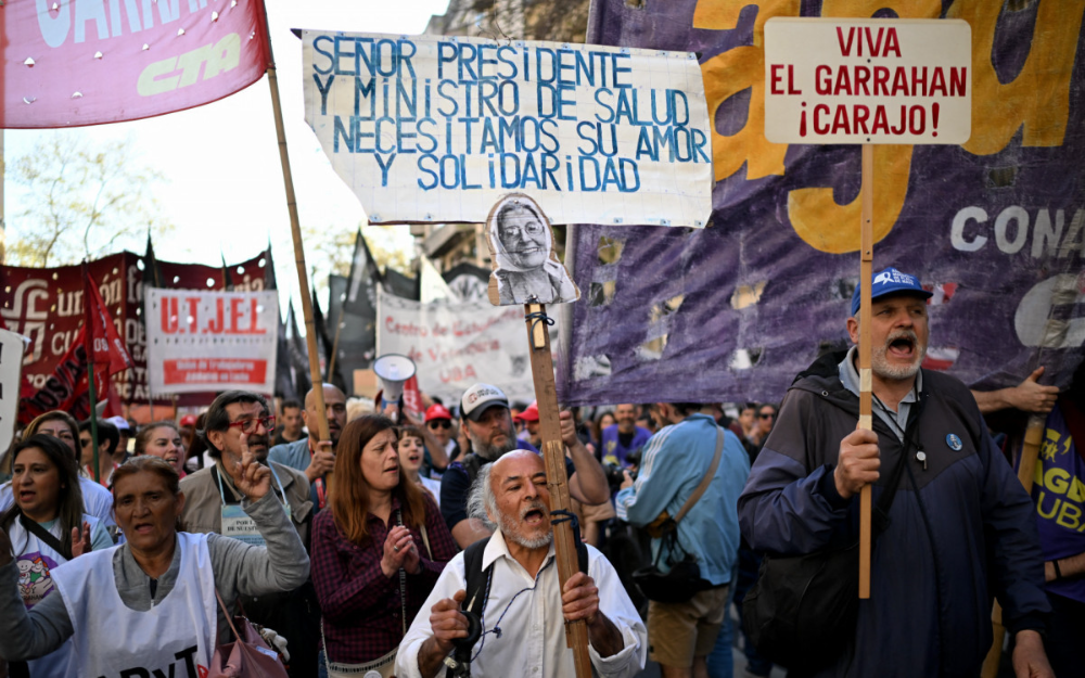 Médicos e enfermeiros do principal hospital pediátrico de Buenos Aires marcharam nesta sexta-feira (12) juntamente com universitários em rejeição aos vetos do presidente Javier Milei ao aumento de fundos para esses setores no âmbito de sua política de ajuste.