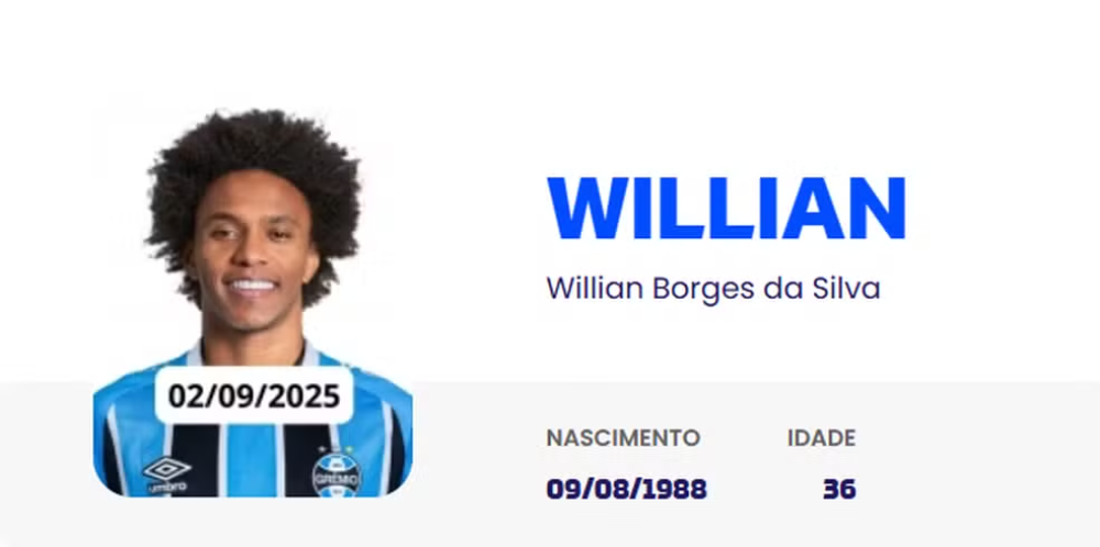 Willian tem 37 anos e fez sua última partida pelo Fulham, da Inglaterra, em 10 de maio. Ao todo, disputou 12 jogos em 2025 após voltar do Olympiacos, da Grécia.