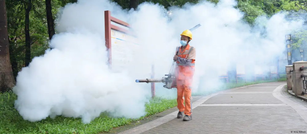 Um surto de vírus chikungunya na China levou as autoridades a adotar medidas preventivas, como o uso de mosquiteiros, nuvens de desinfetante, multas para quem não eliminar água parada e até o uso de drones para localizar criadouros de insetos.