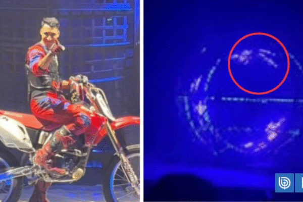 O artista perdeu o controle da motocicleta dentro da esfera de aço quase às cegas, iluminado apenas pelas luzes de LED dos trajes, e caiu, provocando uma colisão com os outros motociclistas.