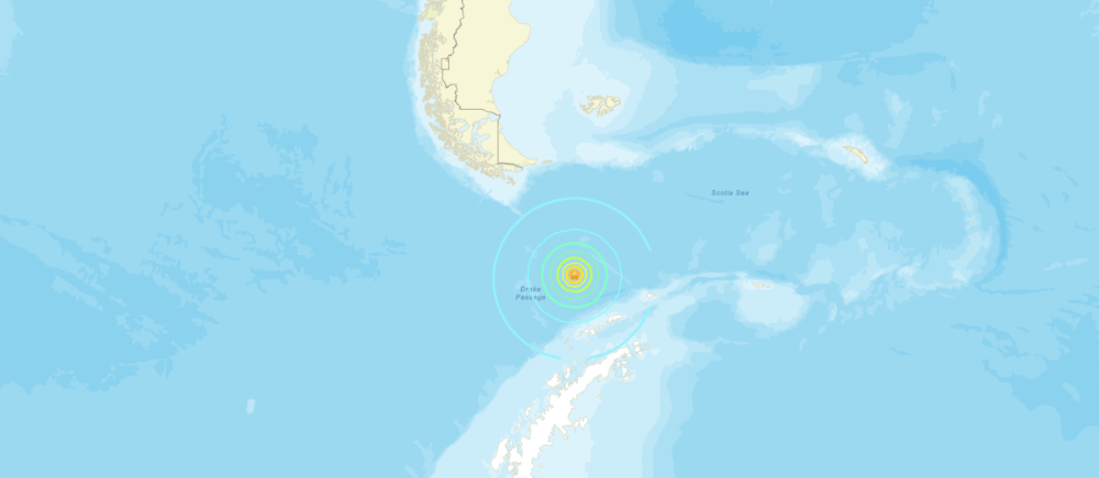 Um terremoto de magnitude 7,1 atingiu a Passagem de Drake, um corpo de água localizado entre o extremo sul da América do Sul e a Antártida, nesta quinta-feira (21), informou o Centro Alemão de Pesquisa em Geociências (GFZ).