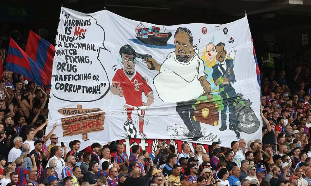 A torcida do Crystal Palace não perdoa John Textor por ficar fora da Liga Europa nesta temporada. O clube londrino, campeão da FA Cup, perdeu a vaga por ser do mesmo grupo do Lyon. Torcedores do Palace protestaram contra o dono do Nottingham Forest, equipe que ficou com a vaga e adversário deste domingo, e aproveitaram para chamar Textor de palhaço em uma bandeira.